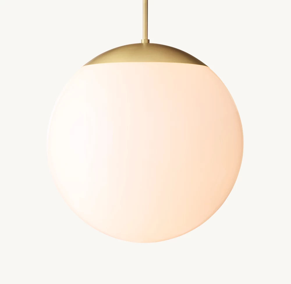 1950年代イタリアンデザインのミニマリズムを感じさせる静謐な美しさを表現した、KumoHikariによるペンダントライトです。ポーランドの熟練ガラス職人によって手吹きされたオパリンガラスの球体が、細長い真鍮製ロッドの先端に浮かびます。シンプルな丸いメタルカラーが取り付けられ、そのフォルムの純粋さにさりげないリズムを与えています。