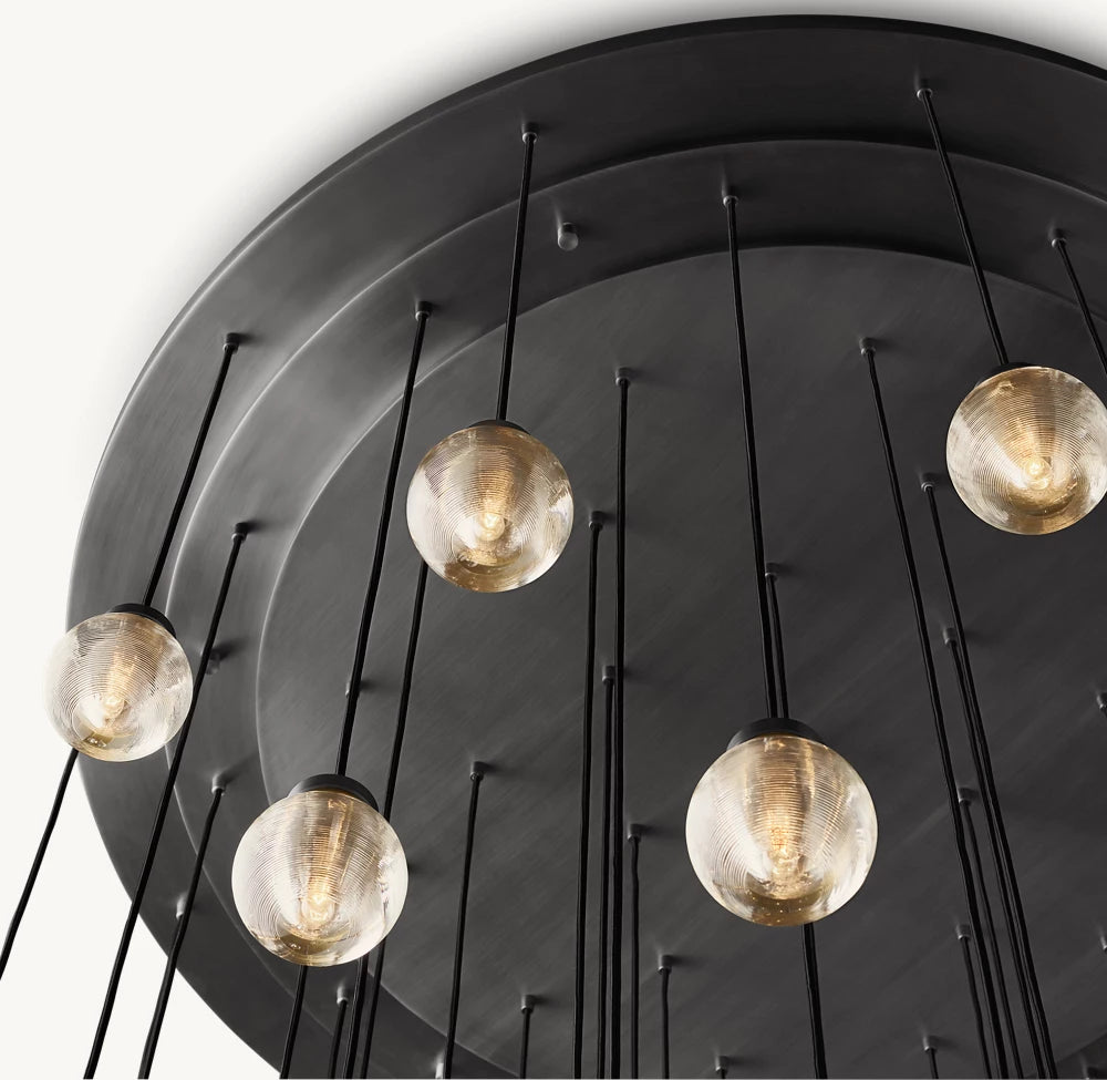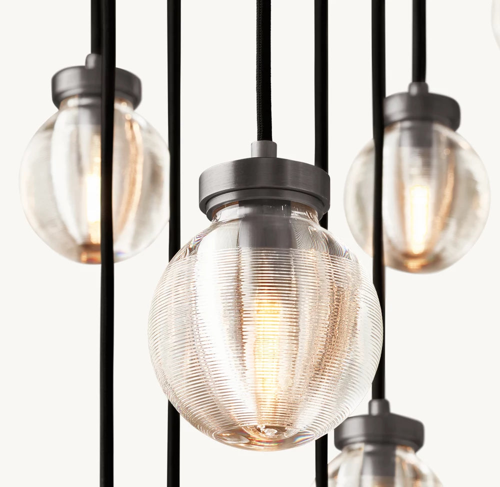 ガラスパールには精緻な溝が施され、光が重なり合ってきらめき、海のような艶やかな美しさを演出します。KumoHikariの熟練ガラスデザイナーによるこのコレクションは、ヴェネツィアのガラス職人が生み出した「インチーゾ技法」に着想を得ています。