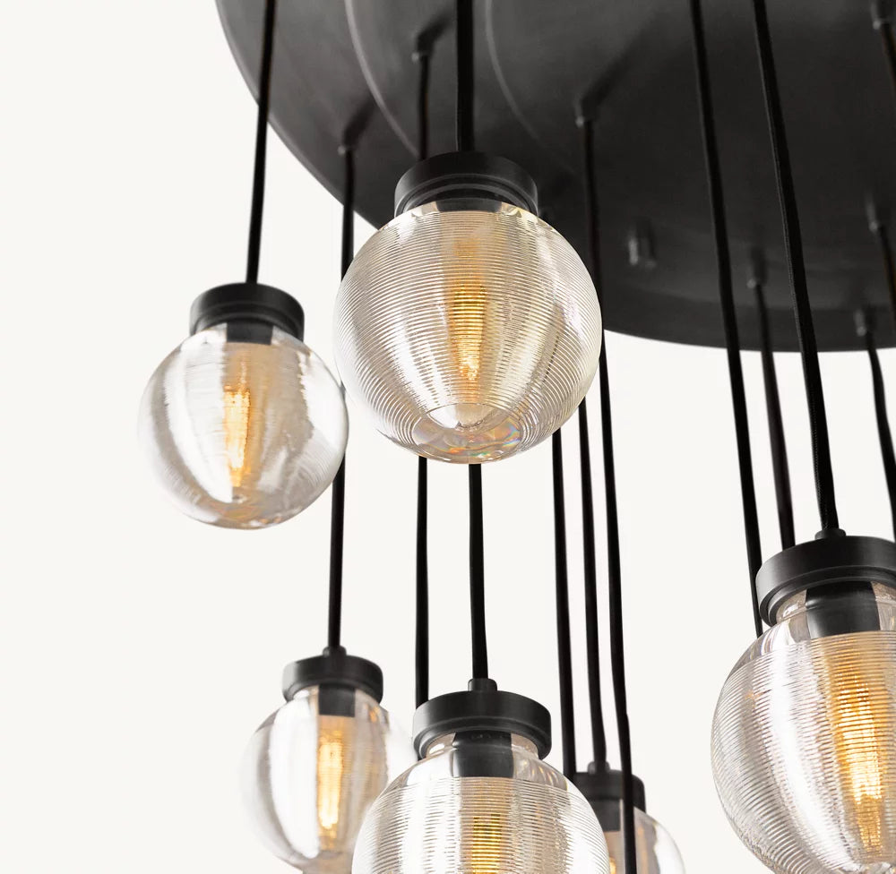 ガラスパールには精巧な溝が施され、光が幾重にもきらめきを重ね、海のように艶やかな美しさを放ちます。KumoHikariの熟練ガラスデザイナーによるこのコレクションは、ヴェネツィアのガラス職人が生み出した「インチーゾ技法」から着想を得ています。