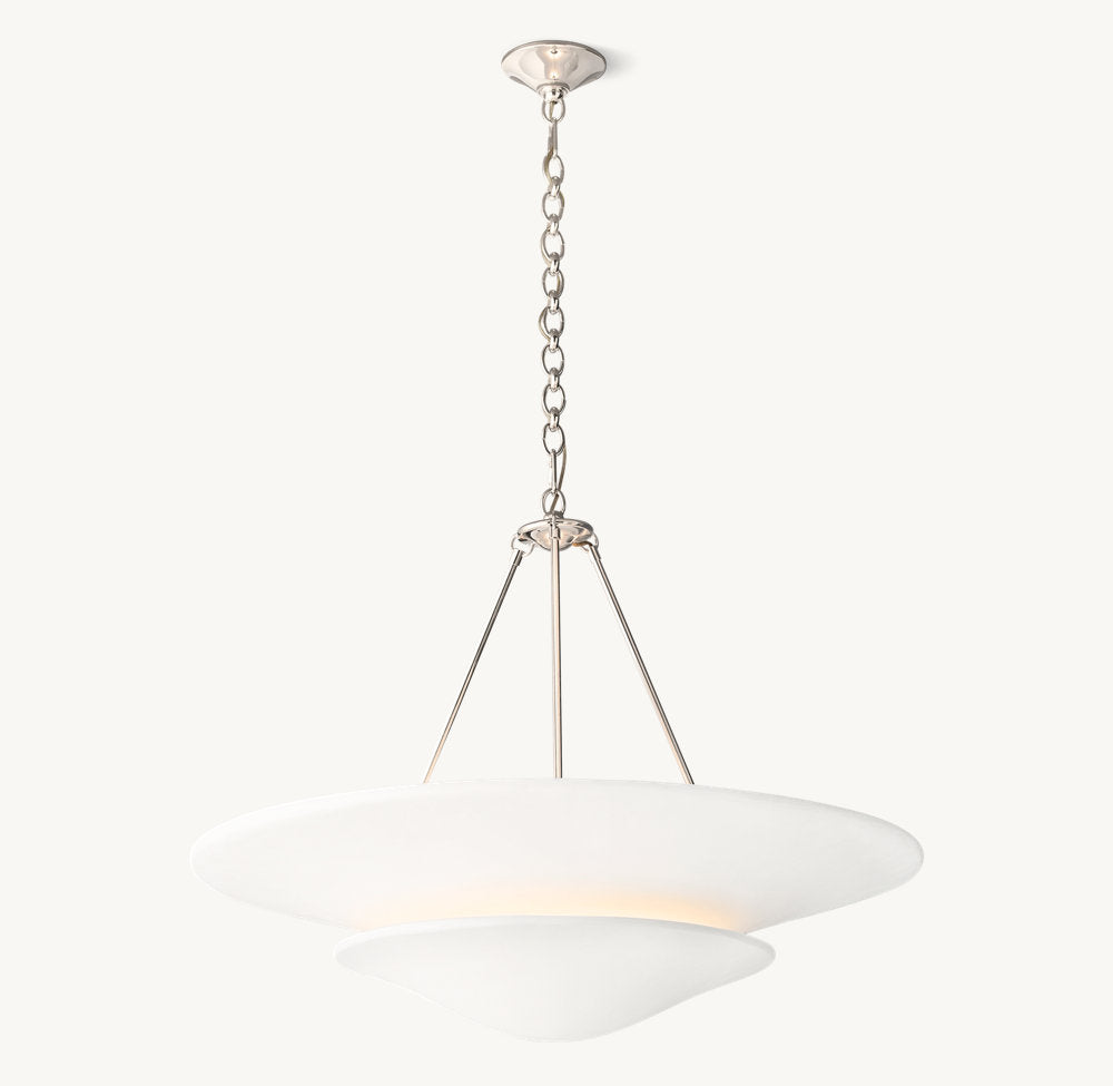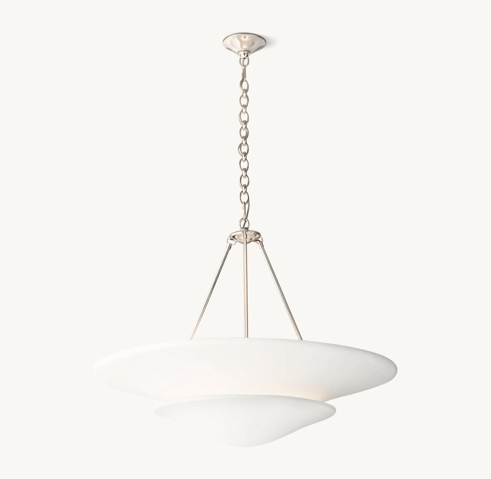 1930年代フランスの贅沢なミニマリズムにインスパイアされた本ペンダントライトは、中国人デザイナーKumoHikariによるデザインです。滑らかなプラスター素材と洗練されたメタルアームの組み合わせが特徴で、二重構造の不透明シェードは彫刻的で有機的なフォルムを持ち、スリムなロッドとの組み合わせにより、純粋でフォーマルな美しさを表現しています。全体として控えめながらもエレガントな存在感を放つデザインです。
