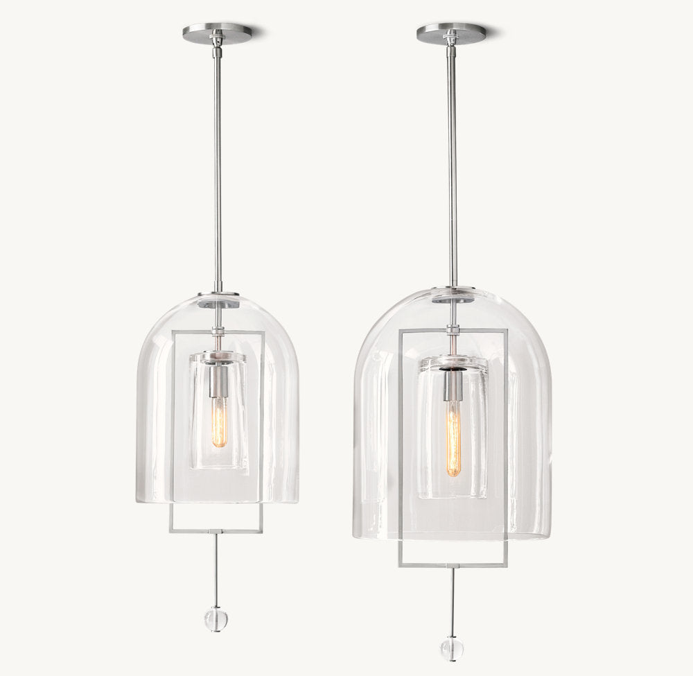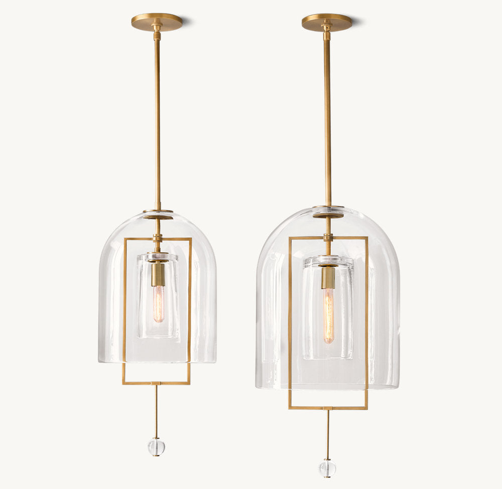 素材:厚さ約6mm(¼インチ)のガラスシェードは、熟練した職人が一つ一つ手吹きで製作。フレームと天井用キャノピーは無垢の真鍮を使用。