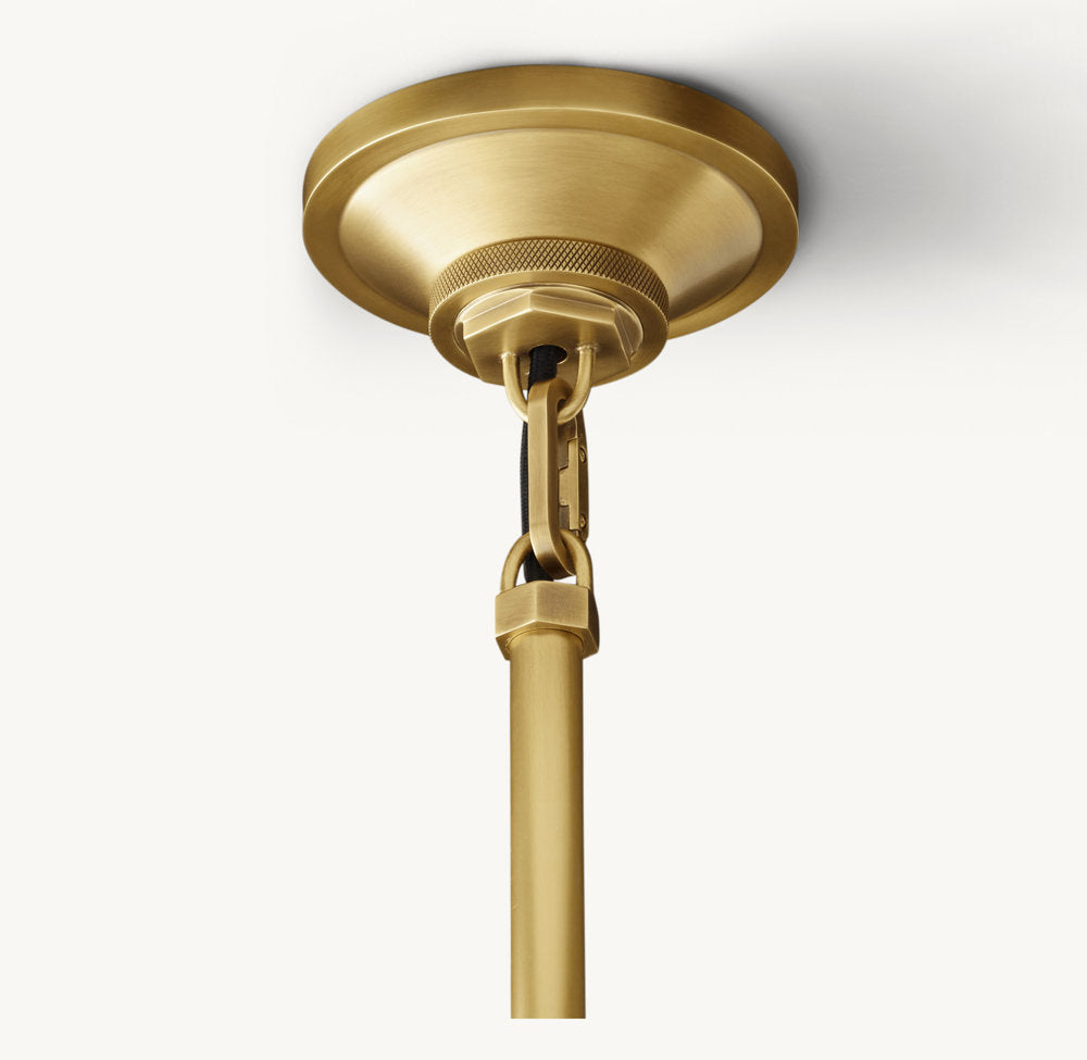 20世紀中頃の工場や作業場で使われていた実用照明に着想を得て、KumoHikariによる「Machinist(マシニスト)」ペンダントは、ユーティリティに洗練を加えたデザインです。伝統とモダンの境界を巧みに橋渡しする本作は、クラシックなドーム型クロッシュシェードを、幾何学的で精密な金属製ヨークが支えています。シャープな角度、ダイヤモンドナックル加工、露出したボルトなど、細部にまでこだわったクラフトマンシップが際立つ一灯です。