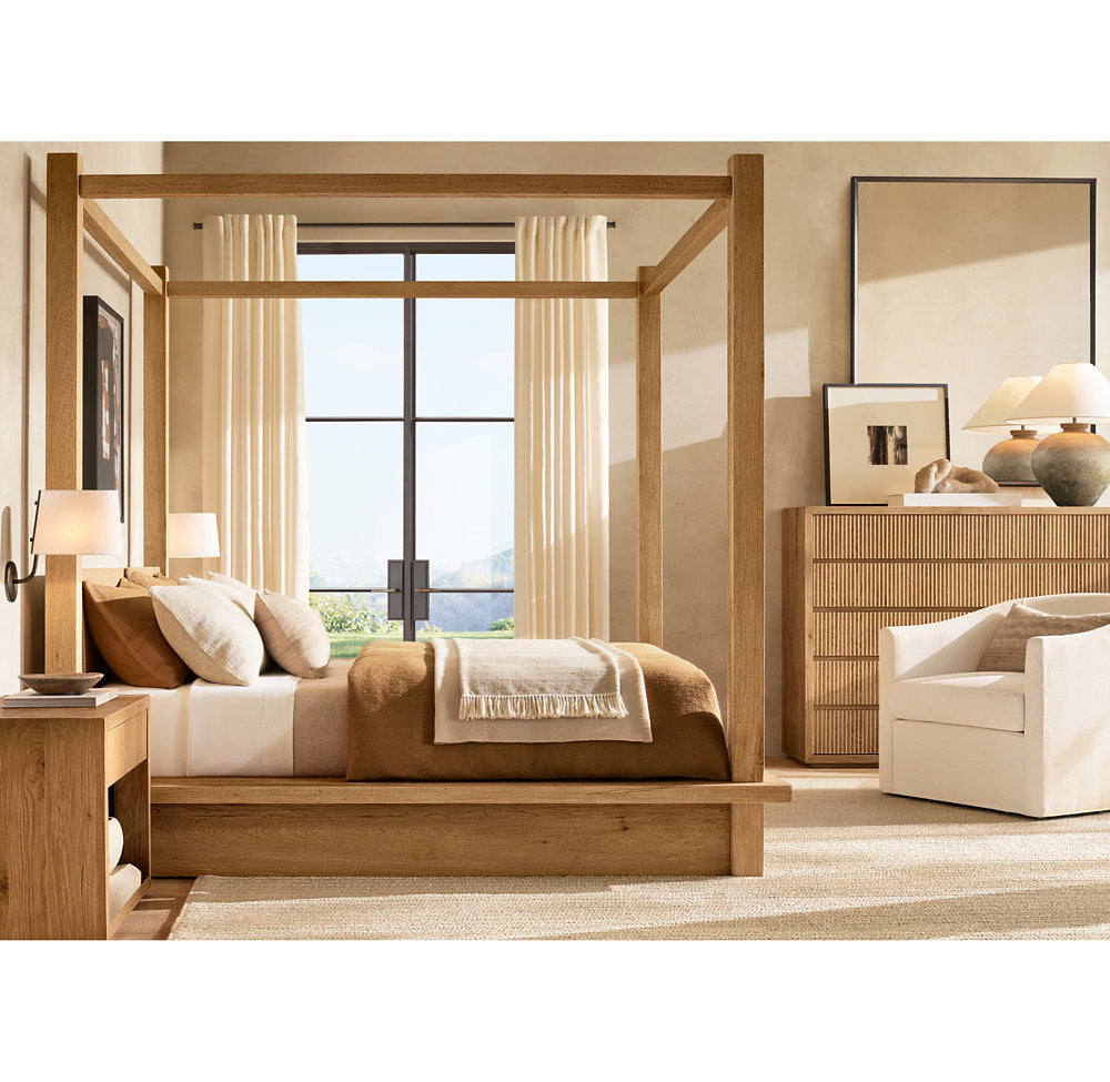 サンフランシスコを拠点とする照明ブランド KumoHikari が手掛けた本コレクションは、1940〜50年代のフランスデザインから着想を得た、形と機能を追求したミニマルで叙情的なシリーズです。線画を思わせる繊細な真鍮のロッドが上方へと伸び、オーバル型のリネンシェードを美しく支えます。抑制されたクラシシズムを感じさせる、洗練された佇まいが特徴です。