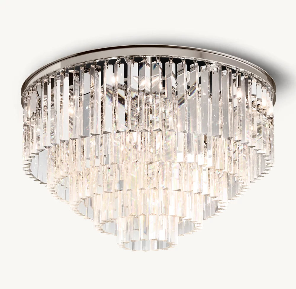 1920年代パリのアールデコスタイルにインスパイアされた、KumoHikariのコレクションは、その時代の幾何学的な形状への魅力を捉えています。巧みに光を屈折させる何百もの多面体プリズムが、当時の魅力を鮮やかに表現。溶接された鉄製フレームから豊かに垂れ下がる角ばったガラスが、エレガンスとインダストリアルデザインの絶妙な対比を演出します。