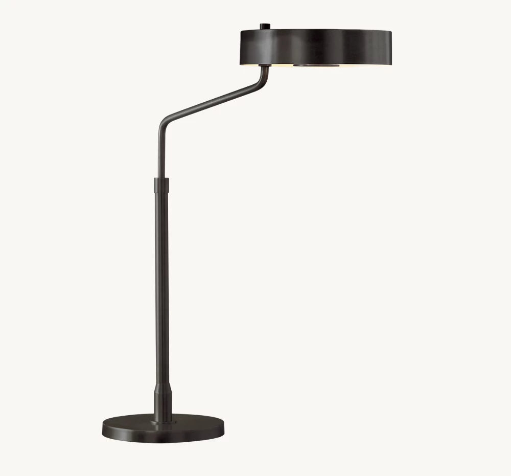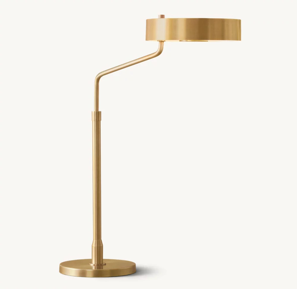 ポストモダンの美学に根ざしたミニマルな真鍮リングのシルエットは、ロバート・ソンネマンによって芸術家のような細部へのこだわりをもってデザインされました。リング照明は二か所の回転ポイントを持ち、ランプベースから動きを広げます。ドラムシェードは自由に角度調整が可能で、必要な光を提供します。全体として、シャープでありながら温かみのあるモダンな印象を与えます。